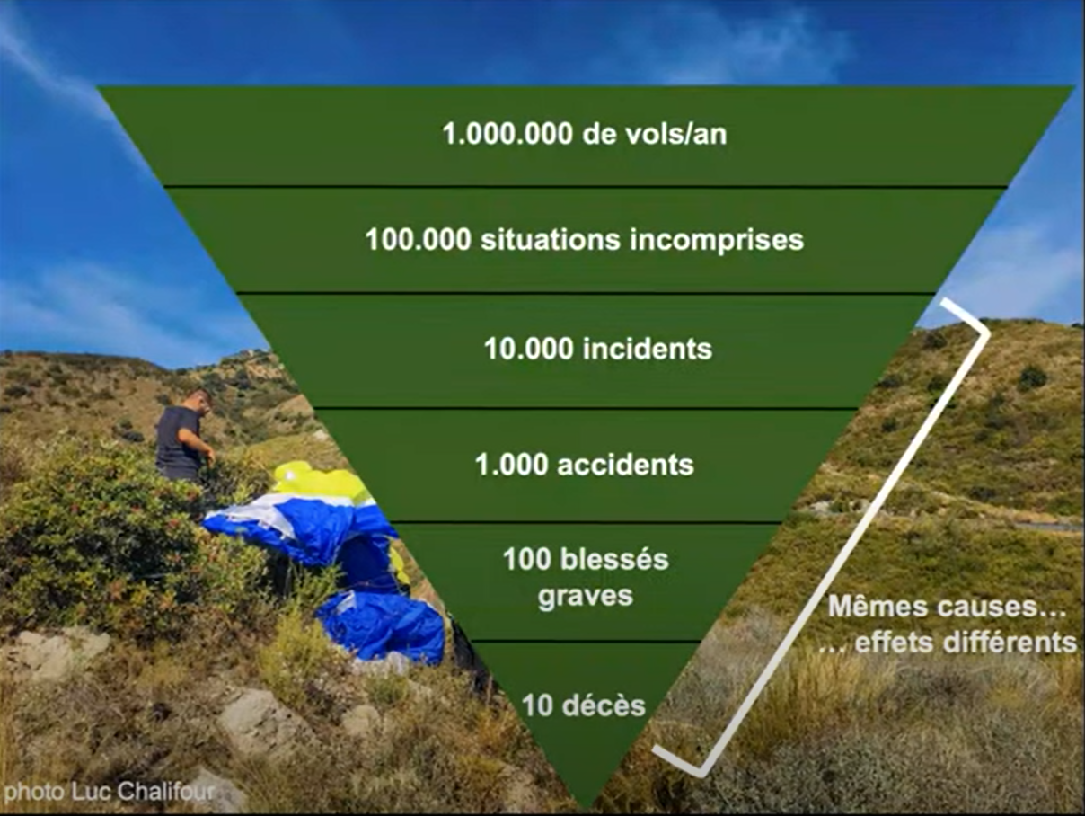 Cette page est basée sur la vidéo diffusée par la FFVL après la séance de présentation du comité national parapente (CnP) autour de la sécurité qui a eu lieu l'été 2023. Cette présentation s'appuie sur des données collectées auprès des adhérents et des enquêtes opérées par le CnP